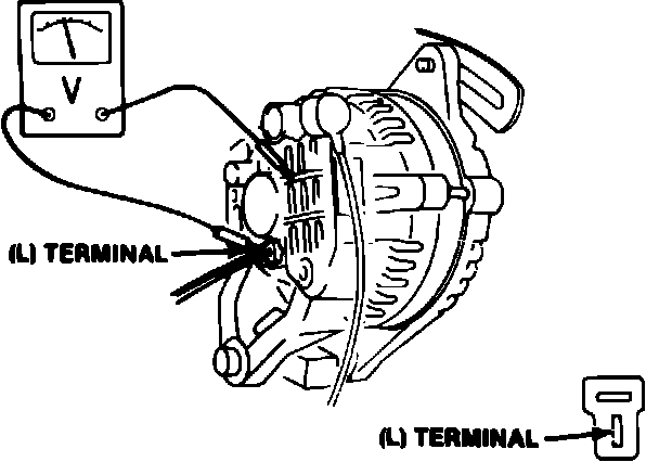 e. If reading is less than 5 amps, measure voltage at L terminal at engine speed of 2500 RPM, Fig. 1. If reading is more than 15 volts at 68° F, refer to step 2. If reading is 14.4-15 volts at 68° F, alternator is satisfactory.