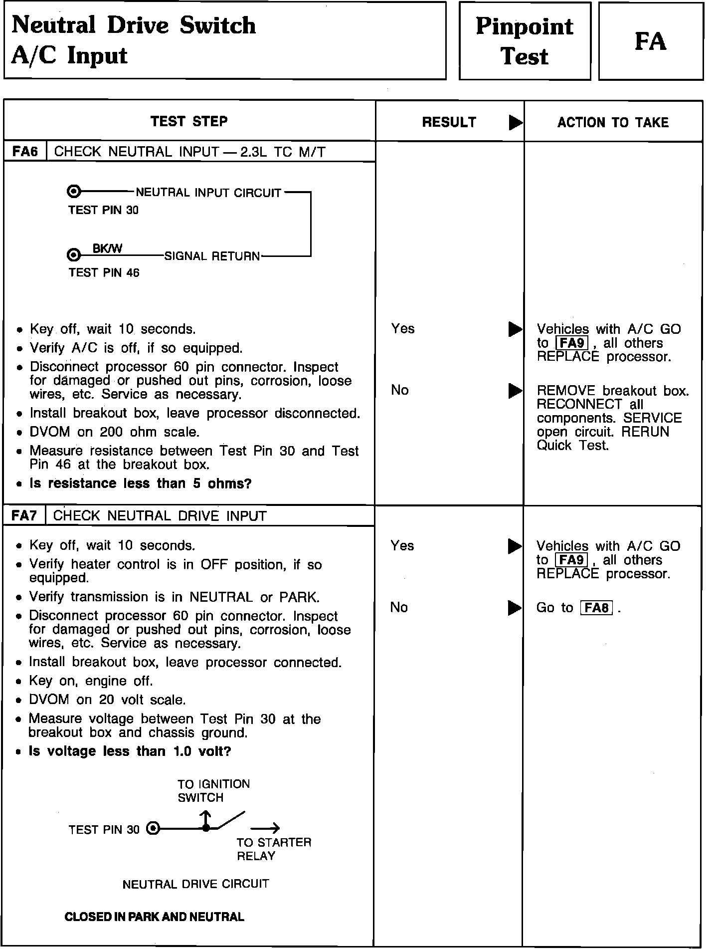 Pinpoint Test FA6 & FA7 - Neutral Drive Switch A/C Input: