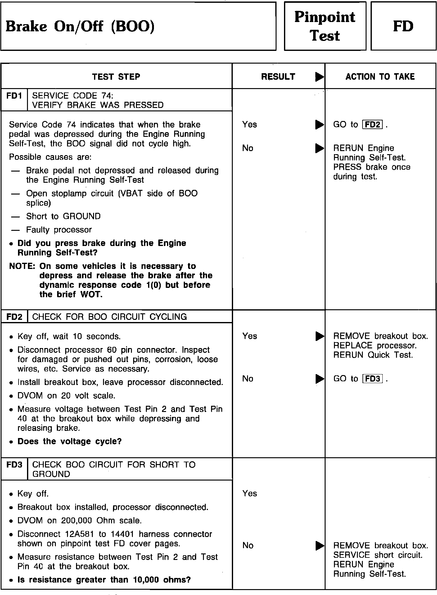 Pinpoint Test FD1 Thru FD3 - Brake On/Off (BOO):