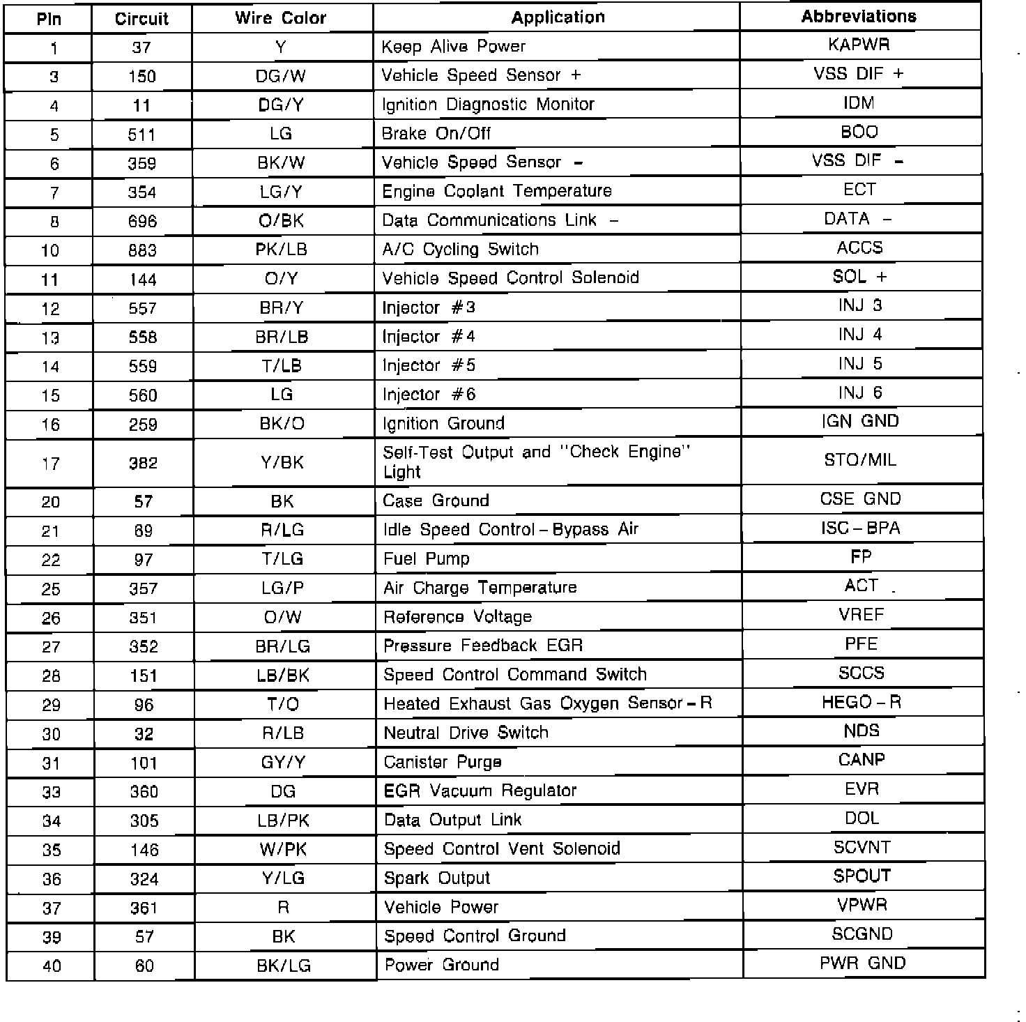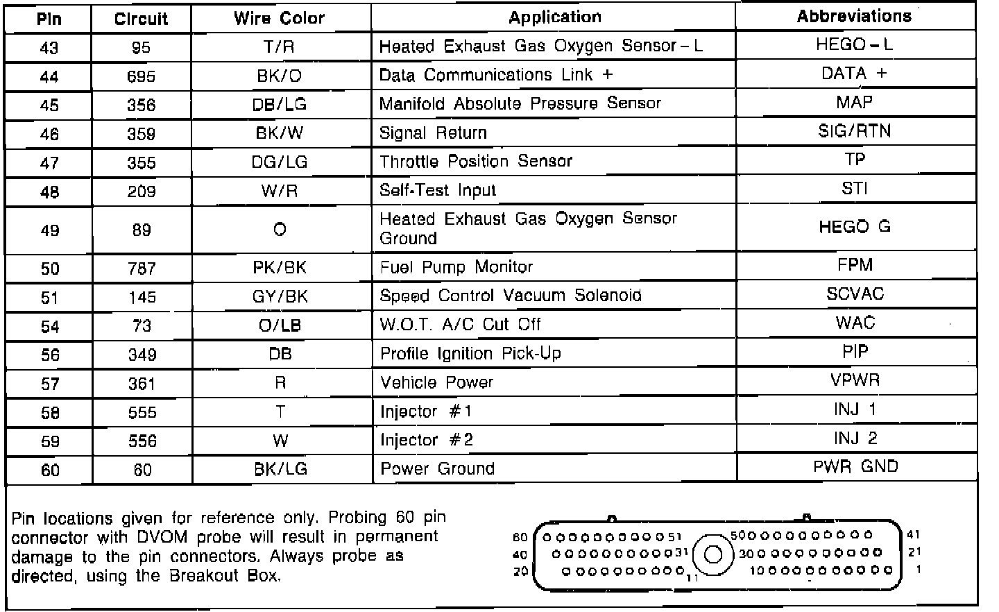 EEC-IV Module Connector Pin Usage: