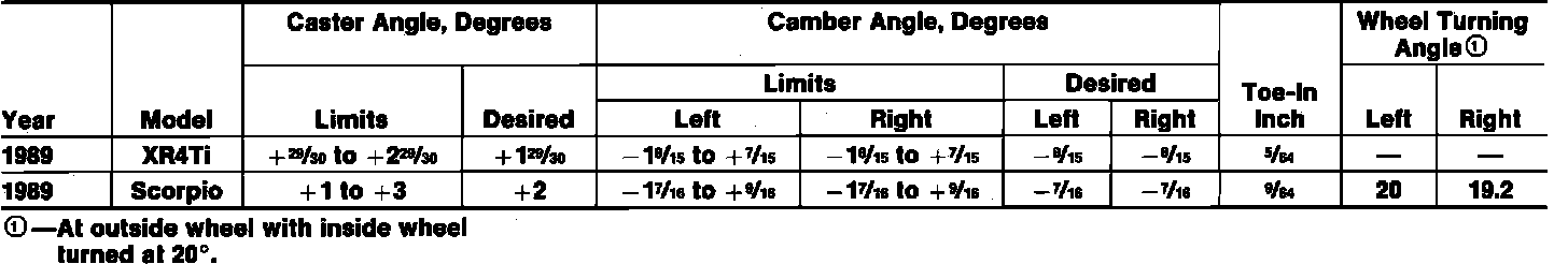 Front Wheel Alignment Specifications: