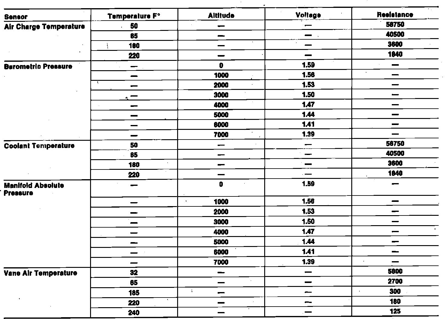 Sensor Specifications: