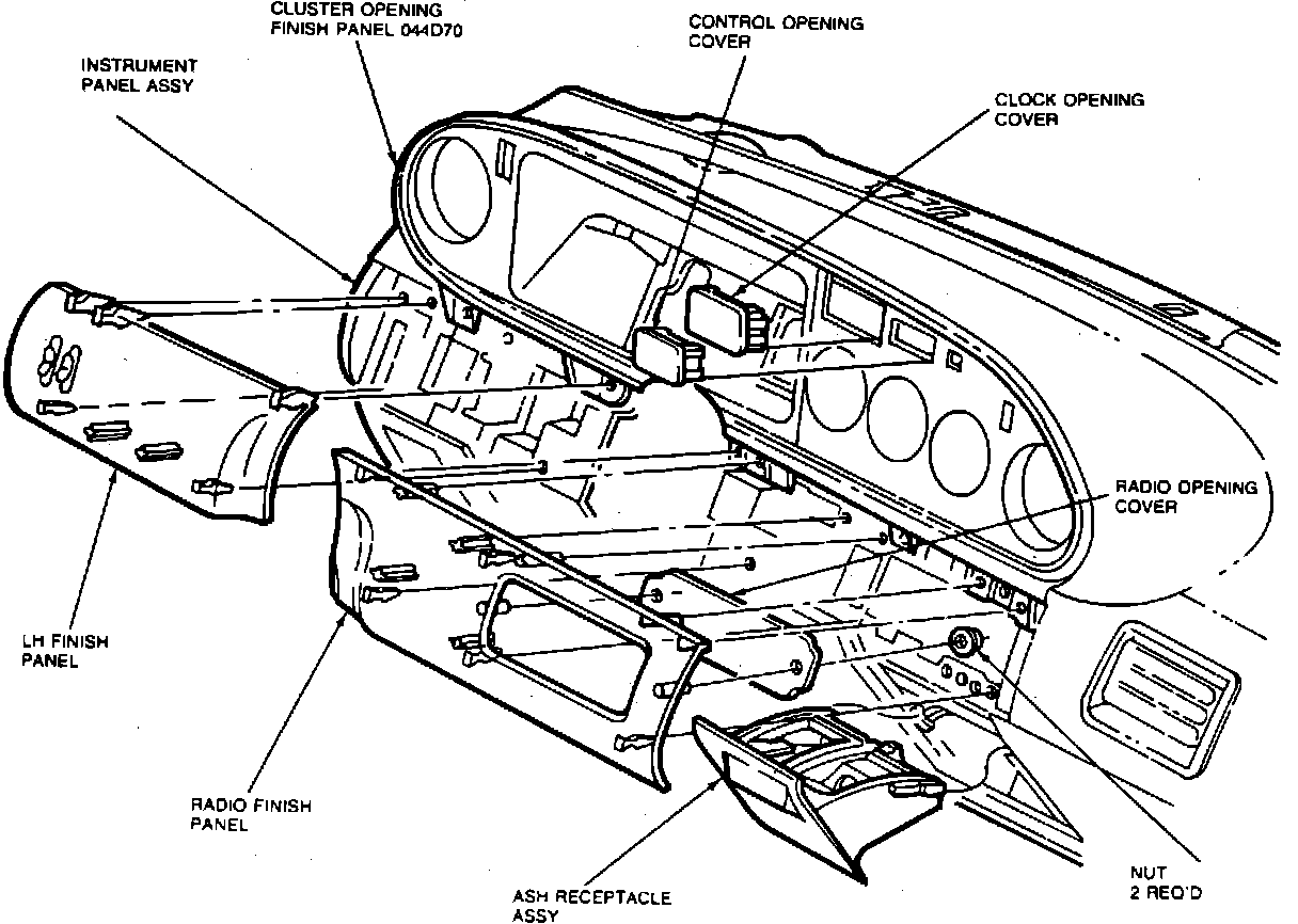 7. Remove lower left side and radio finish panels by snapping out, Fig. 64.