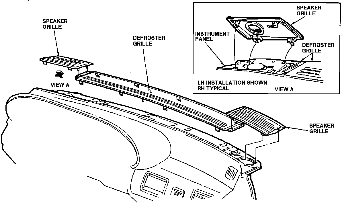 Fig. 67 Removing Defroster & Speaker Grilles. Sable & Taurus: