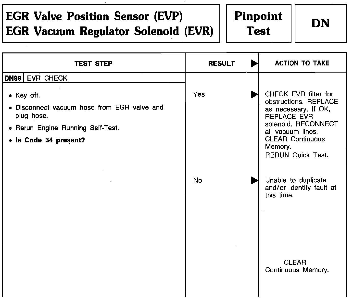 Pinpoint Test DN99 - EGR Valve Position Sensor (EVP)/EGR Valve Regulator (EVR):