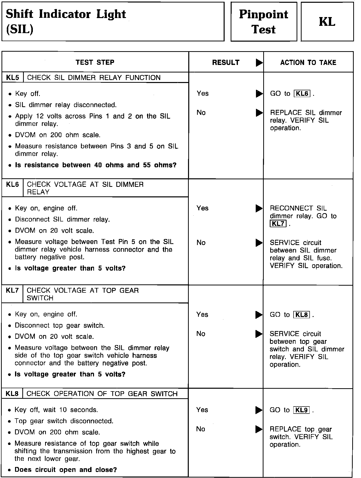 Pinpoint Test KL5 Thru KL8 - Shift Indicator Light (SIL):