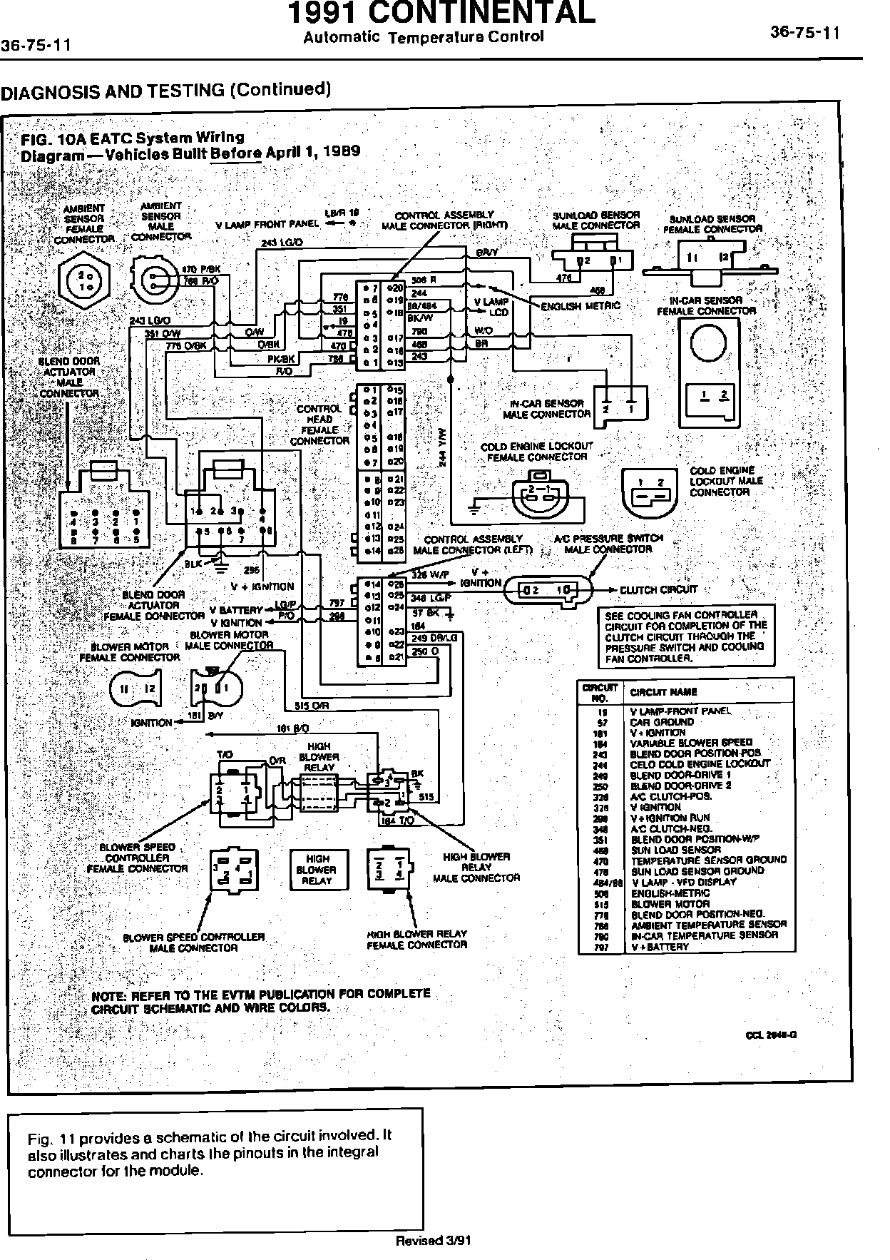 1991 CONTINENTAL Automatic Temperature Control
