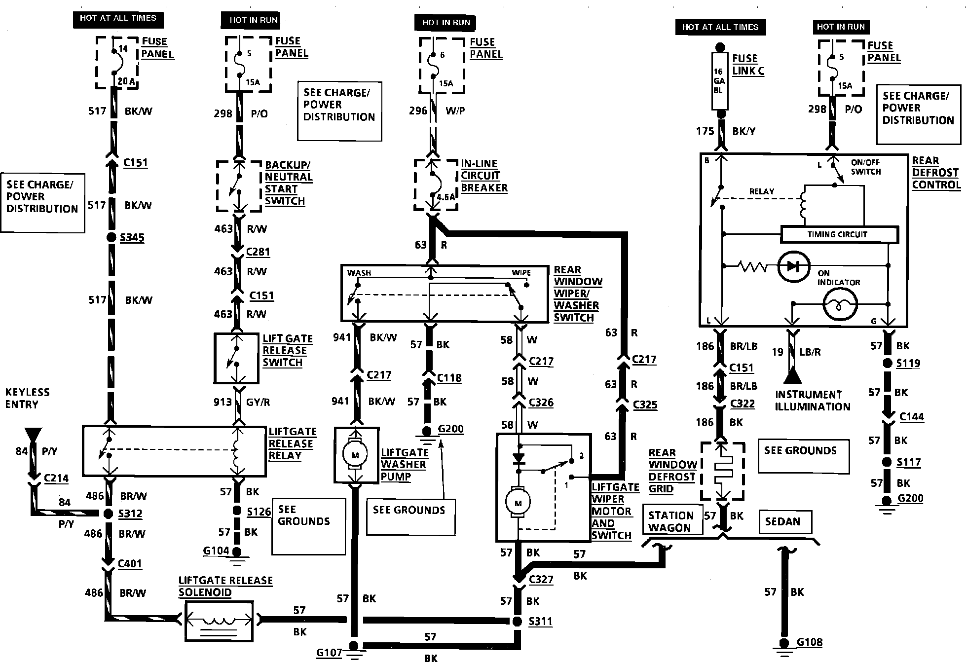 Rear Window Defogger, Rear Window Wiper/Washer & Liftgate Release Wiring Circuit: