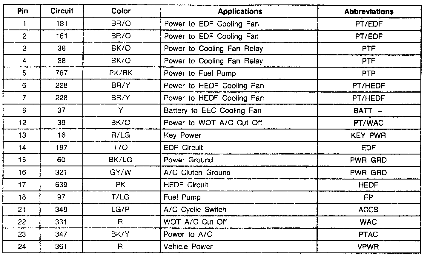 Integrated Relay Controller Module (IRCM) Pin Usage: