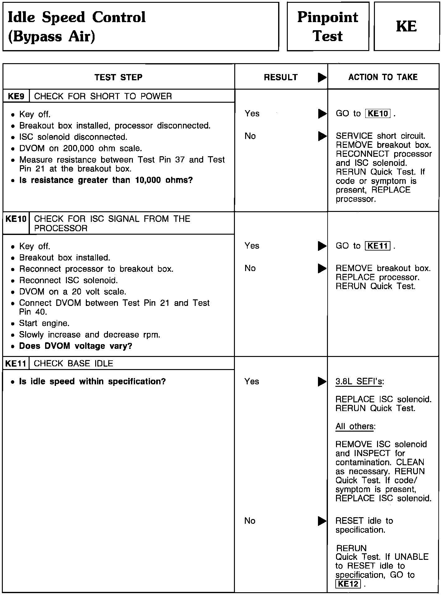 Pinpoint Test KE9 Thru KE11 - Idle Speed Control (Bypass Air):