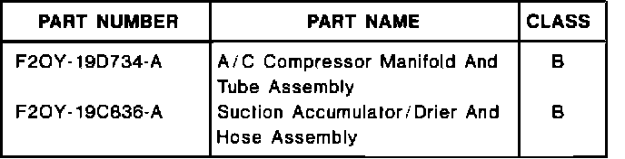 The air conditioner FX-15 compressor may be noisy in some Taurus/Sable vehicles with 3.0L engines or Continental vehicles with 3.8L engines. This may occur because the A/C compressor manifold and tube assembly or the suction accumulator/drier and hose assembly do not muffle or dampen the noise.