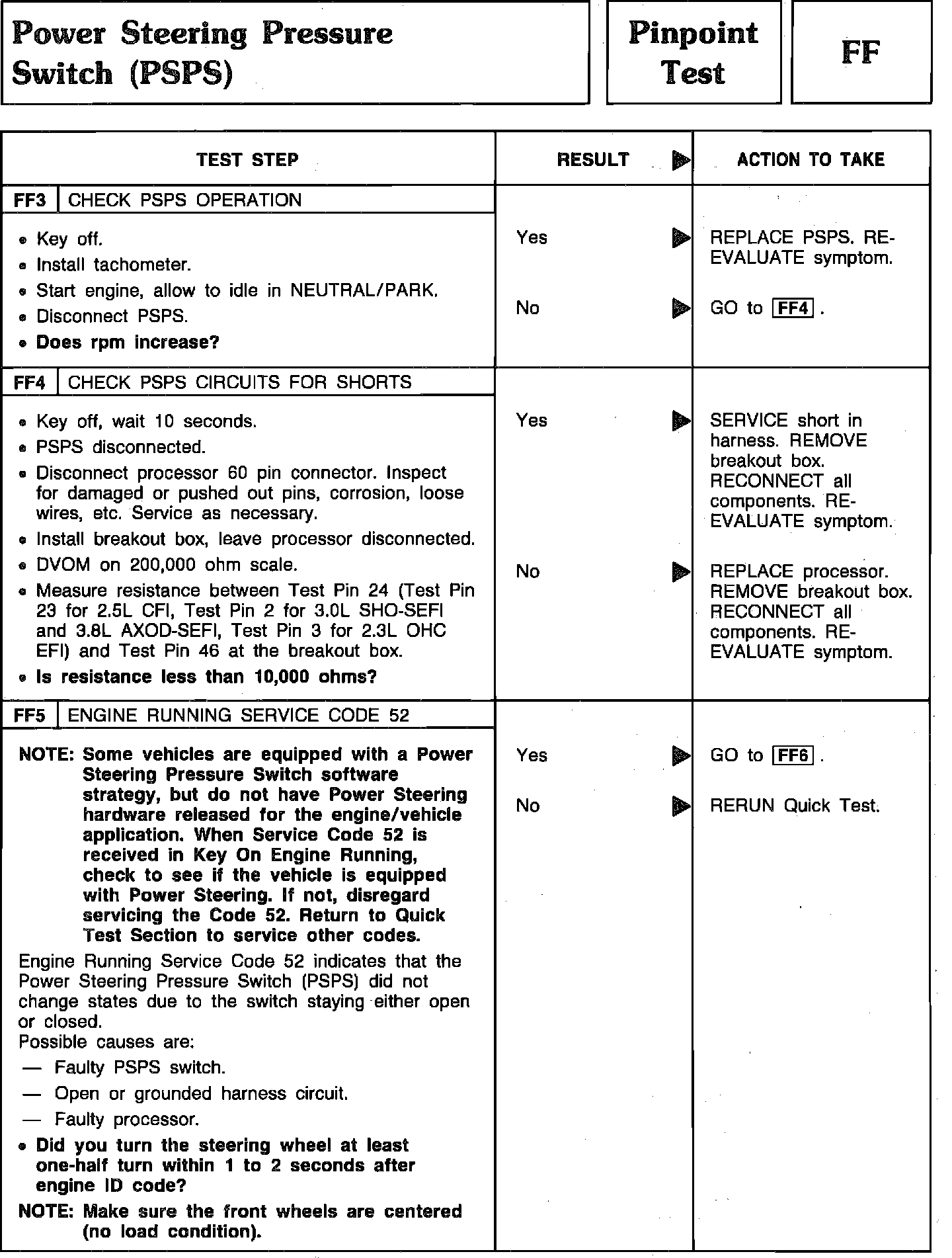 Pinpoint Test FF3 Thru FF5 - Power Steering Pressure Switch (PSPS):