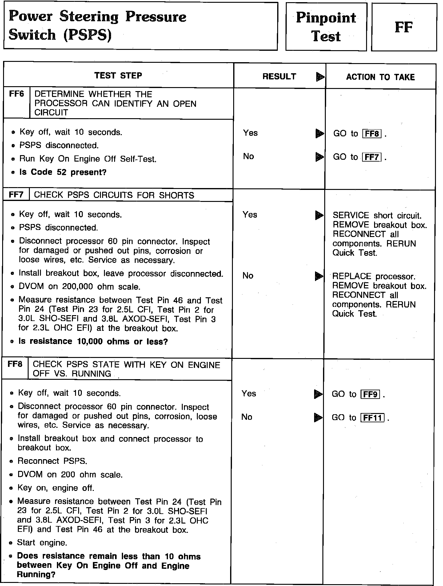 Pinpoint Test FF6 Thru FF8 - Power Steering Pressure Switch (PSPS):