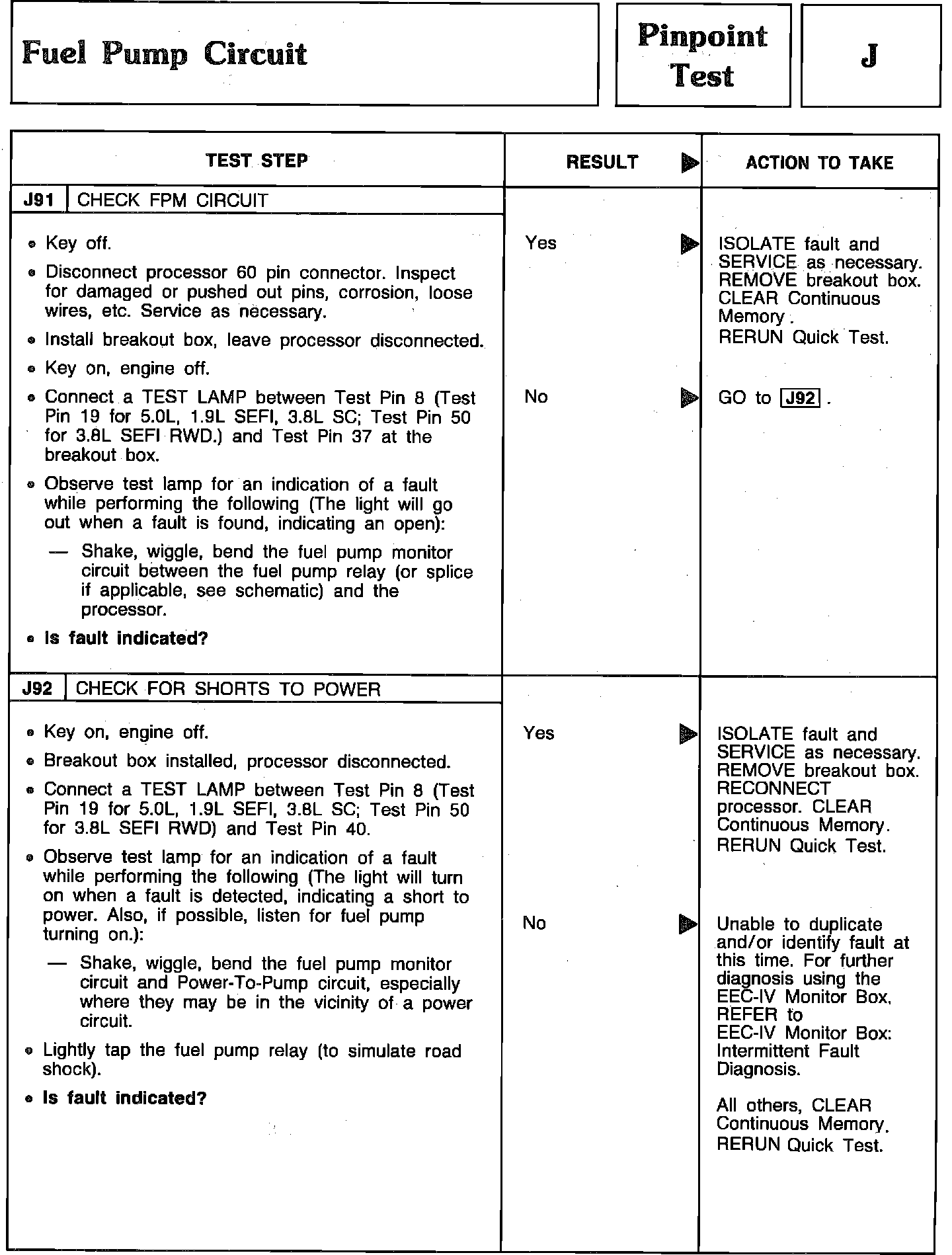 Pinpoint Test J91 & J92 - Fuel Pump Circuit: