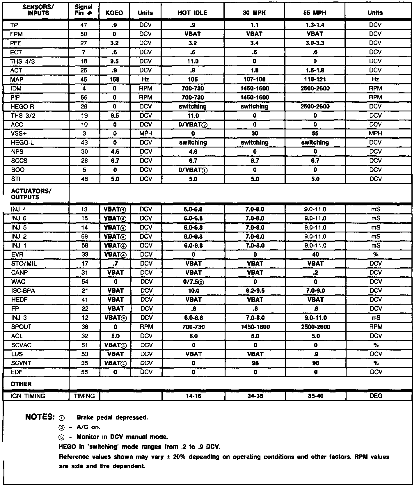 Normal Scan Data Values (Includes PIDs)