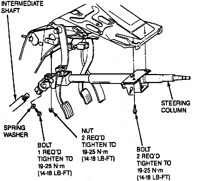 a. Lower steering column retaining bolts to 14-18 ft. lbs.