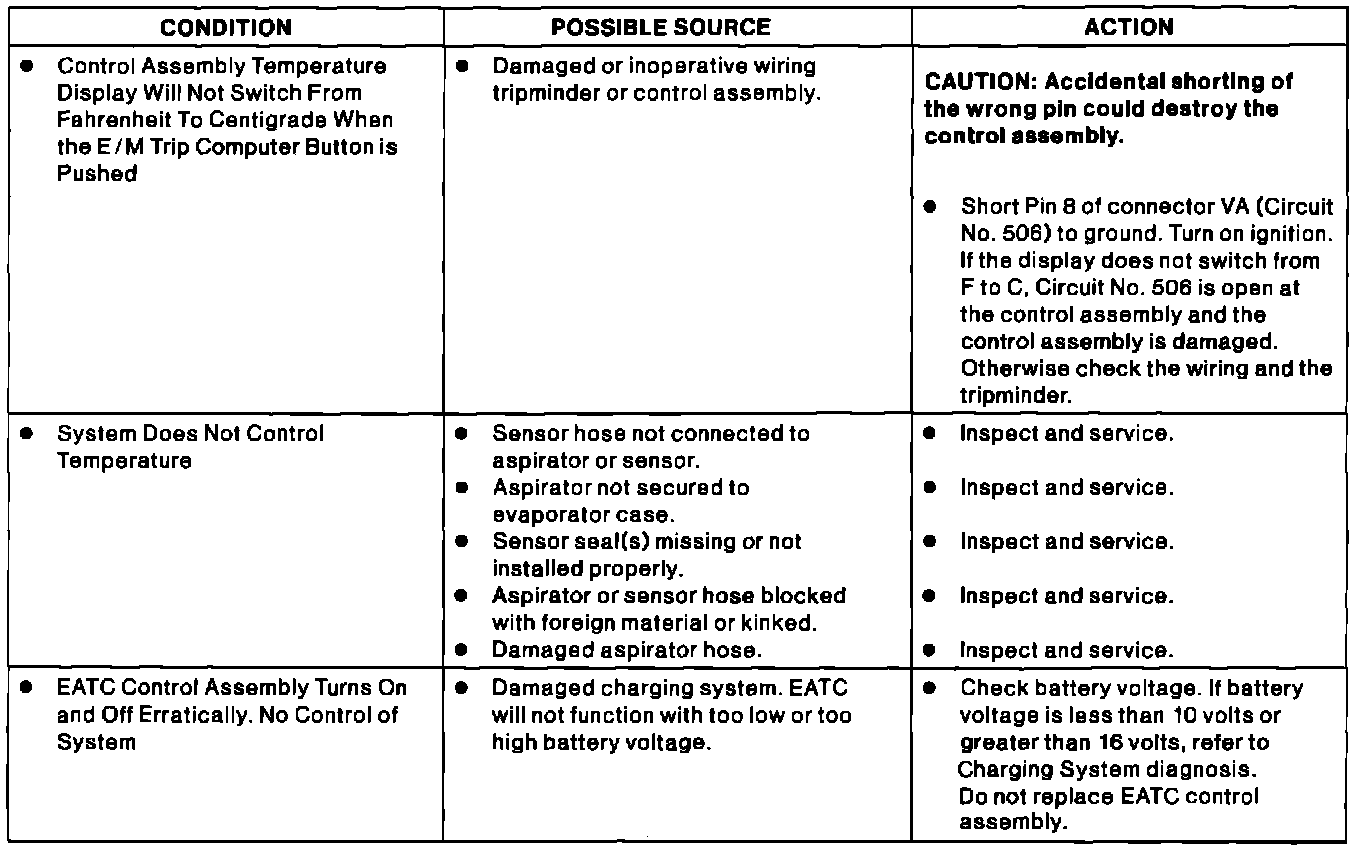 Diagnosis when Electronic Automatic Temperature Control (EATC) Diagnostic Self-Test and System Functional Test DO NOT identify a Symptom and it's possible source indicate NO ERROR Found.