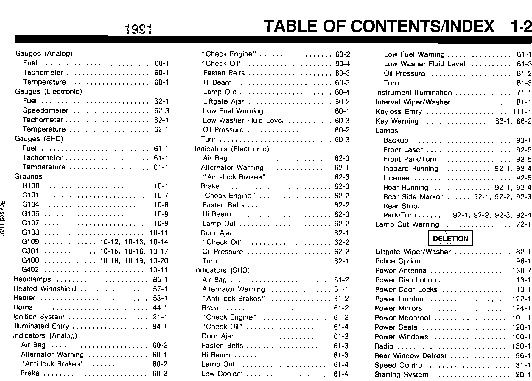 ^ ELECTRICAL/VACUUM TROUBLESHOOTING MANUAL - 1991 - PAGE 1-2 - REFERENCE TO REMOTE LIFTGATE RELEASE DELETED