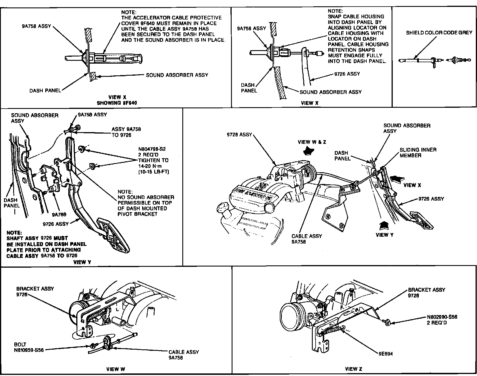1. Insert pedal end of cable, with cover in place, through dash panel and snap cable housing into dash panel. Ensure that the cable housing retention snaps have engaged into dash panel.