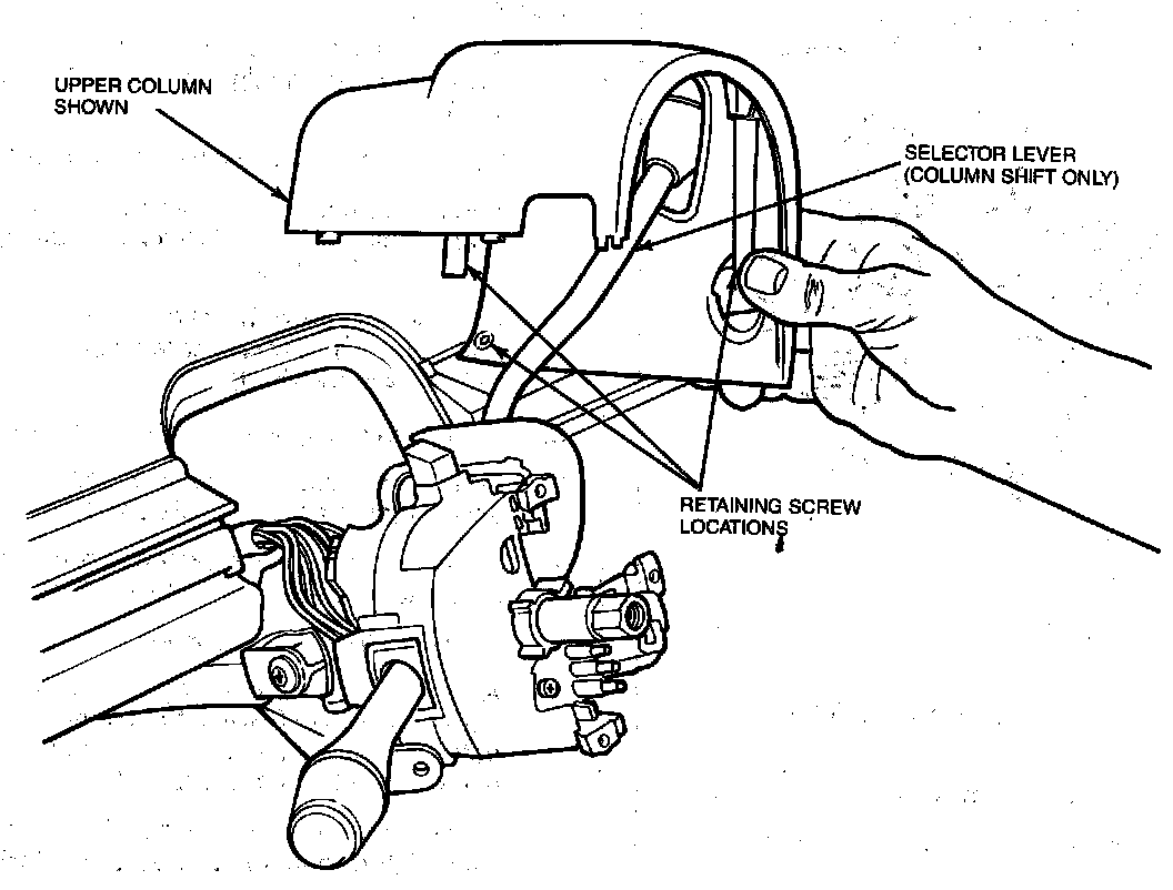 18. While supporting column assembly, remove four column assembly retaining nuts. Lower column and disconnect vacuum hoses at parking brake release switch or remove vacuum release assembly.