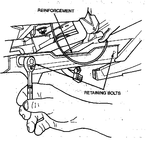9. Remove two instrument panel reinforcement brace retaining bolts. Remove reinforcement.
