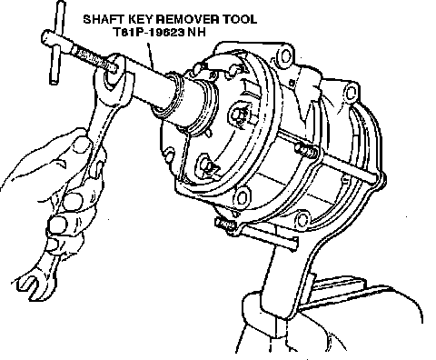 4. Remove key from compressor shaft with tool T81P-19623-NH or equivalent, Fig. 9.