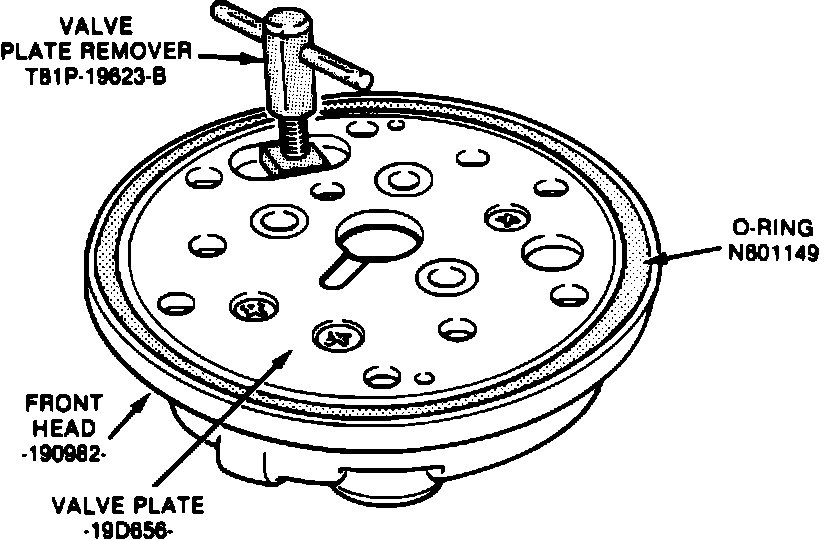 7. Remove front valve plate assembly and gasket from front head with tool T81P-19623-B or equivalent, Fig. 10.