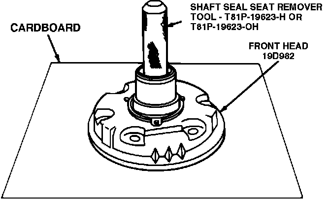 11. Place head on a piece of clean corrugated cardboard and remove seal seat assembly using tool T81-19623-OH or equivalent, Fig. 11.