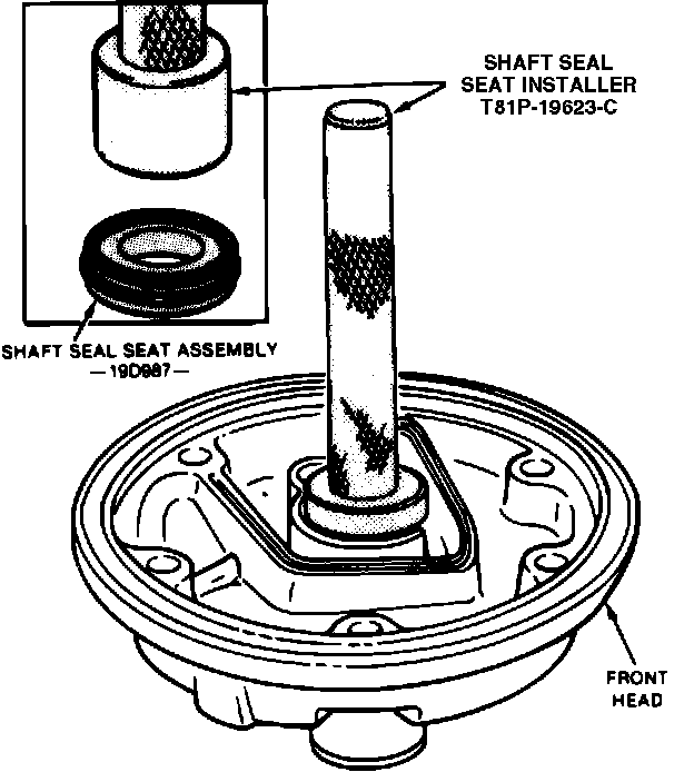 6. Lubricate shaft seal with clean refrigerant oil and install seat in front head with groove on seat sealing surface up, using tool T81P-19623-C or equivalent, Fig. 13.