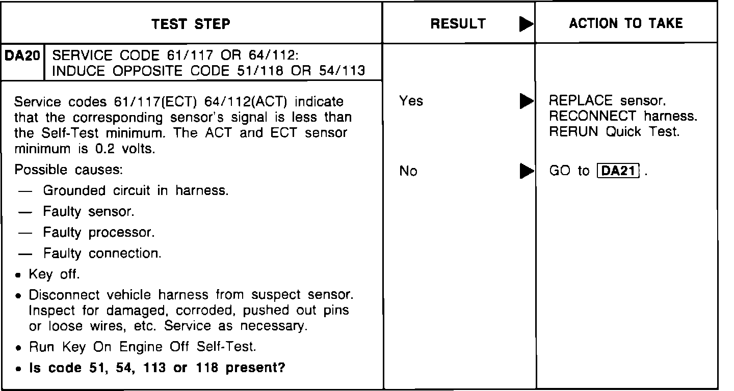 DA20 - Code 61/117 or 64/112 Induce Opposite Code
