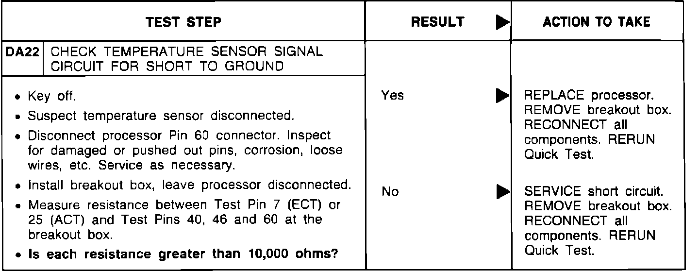 DA22 - Check Temperature Sensor Circuit For Short to Ground