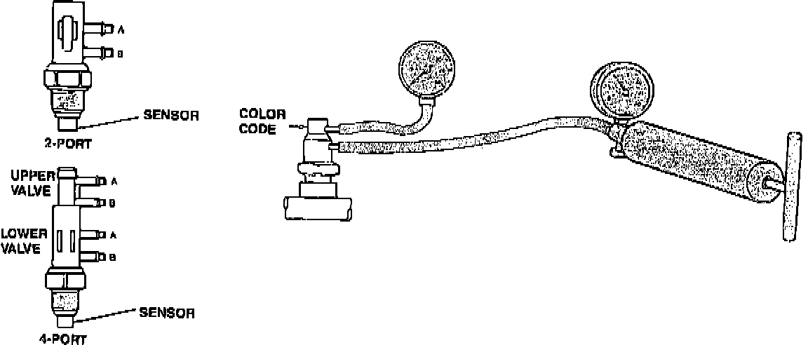 Applying vacuum to Port A1 and A2, while the engine and sensor are cold, should produce the OPPOSITE results, at Port B1 and B2, as to when the engine and sensor are warmed and vacuum is applied.