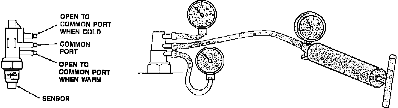 NOTE: The 3-Port Electrical Vacuum Switch could be opened or closed on a cold engine. After the engine warms up to operating temperature, the valve will be in the reversed position (closed or opened).