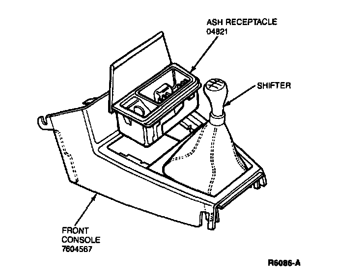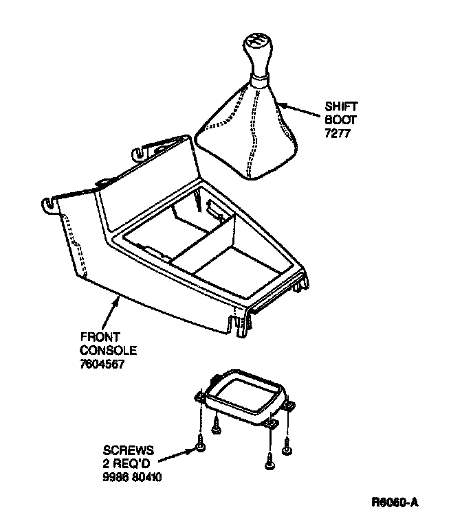 7. If equipped with a manual transaxle. remove screws and front console leaving shift knob and boot on shift lever.