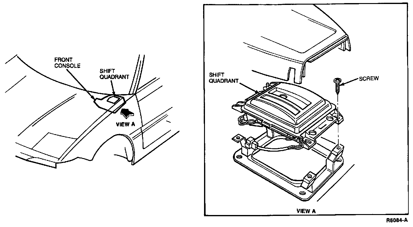 9. On vehicles equipped with an automatic transaxle, remove screws and shift quadrant. Disconnect shift quadrant lamp connector.