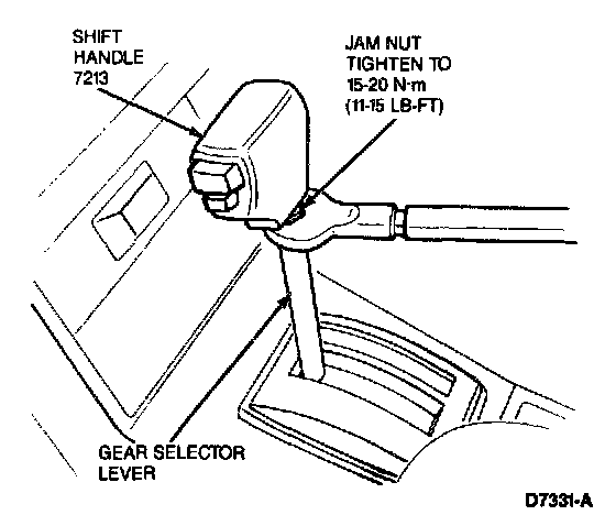 6. If equipped with an automatic transaxle, install shift handle. Tighten jam nut to 15-20 N.m (11-15 lb-ft).