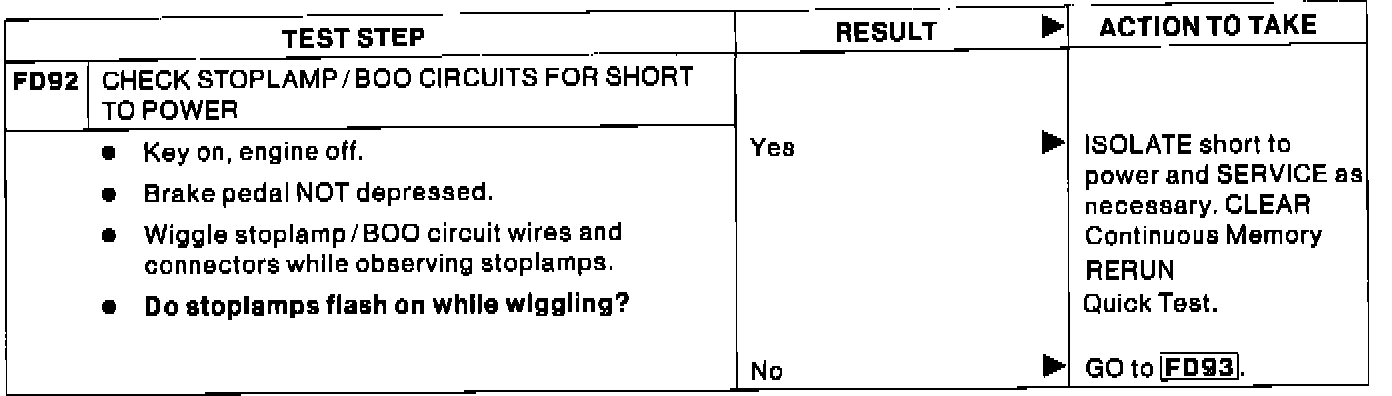 FD92 - Check Stoplamp/BOO Circuits For Short to Power