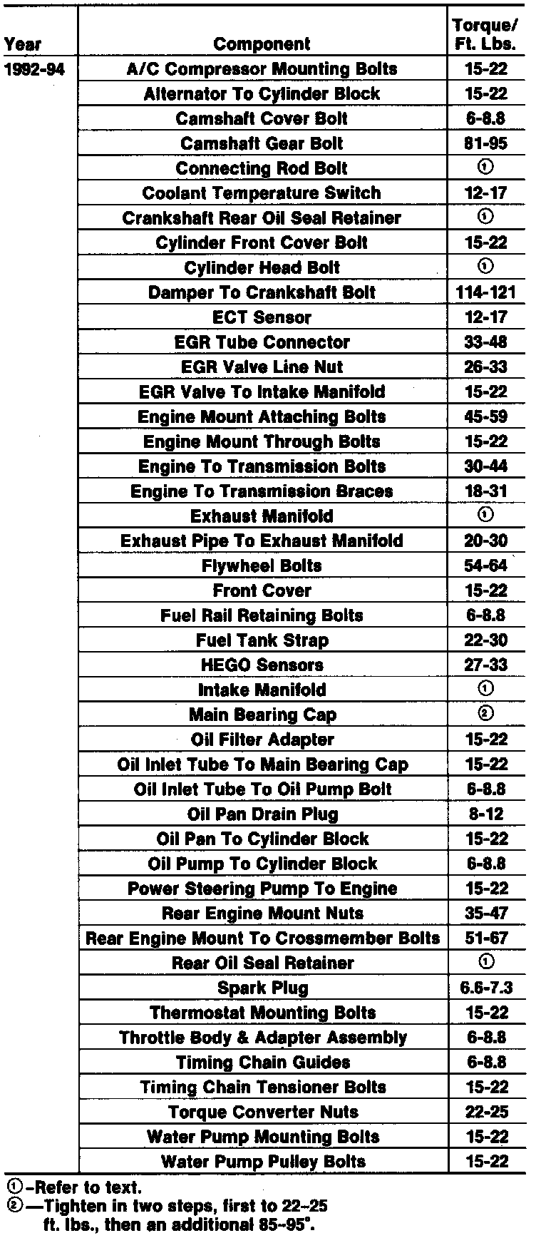 Tightening Specifications: