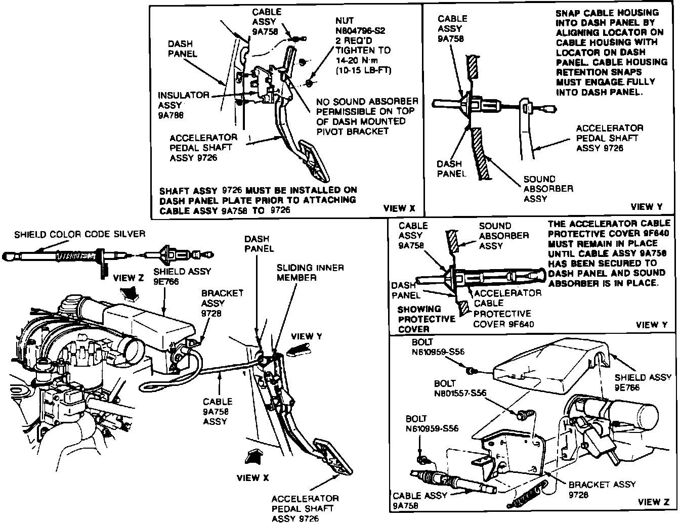 1. Insert pedal end of cable, with cover in place, through dash panel and snap cable housing into dash panel. Ensure that the cable housing retention snaps have engaged into dash panel.