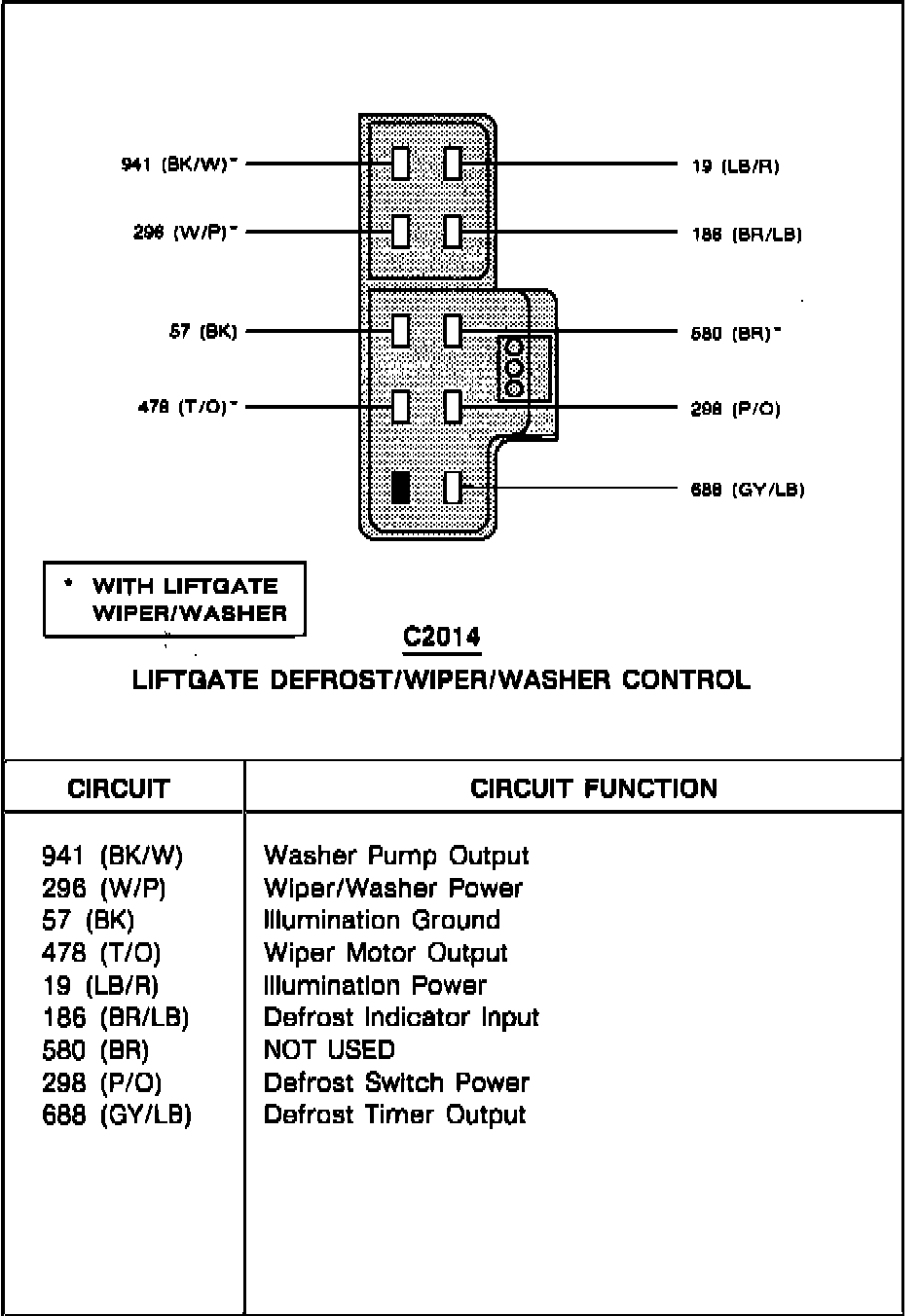 Liftgate Defrost/Wiper/Washer Control