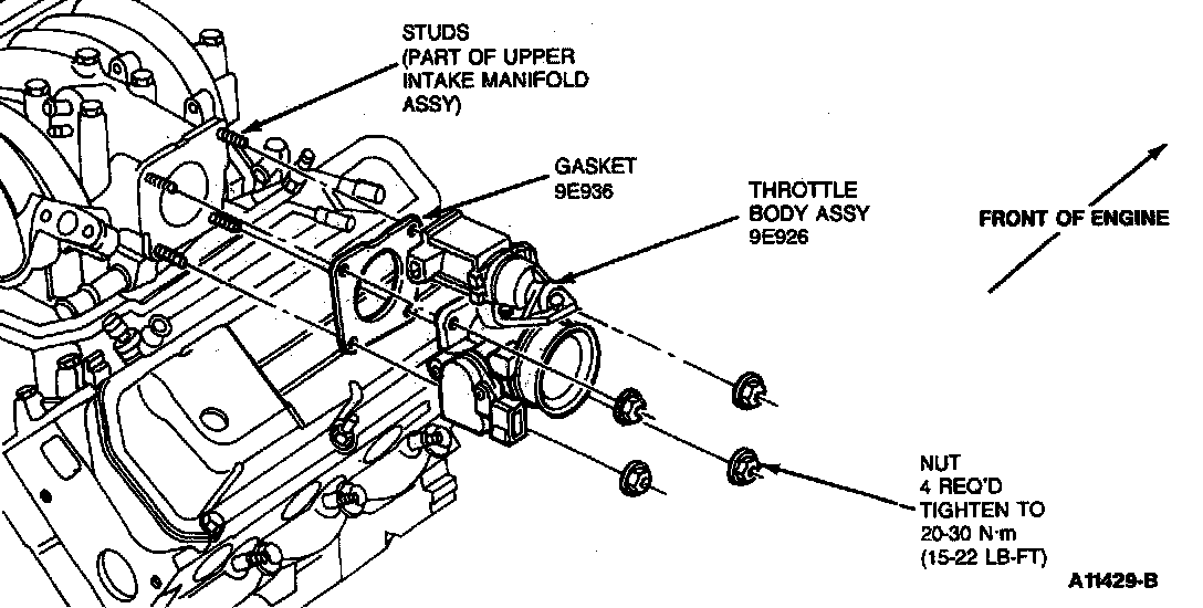 3. Disconnect accelerator cable at throttle body assembly. Disconnect speed control cable if so equipped.