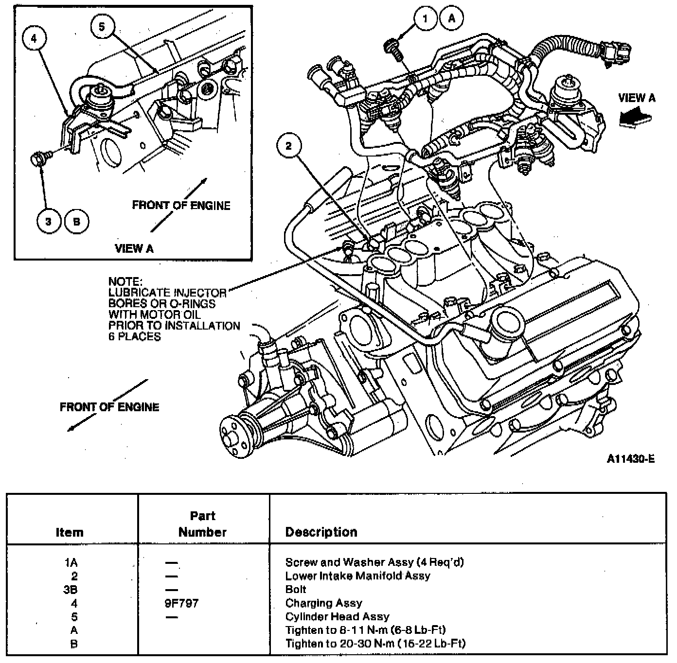 1. The lower intake manifold, cylinder head, and cylinder block mating surfaces should be clean and free of old gasketing material.
