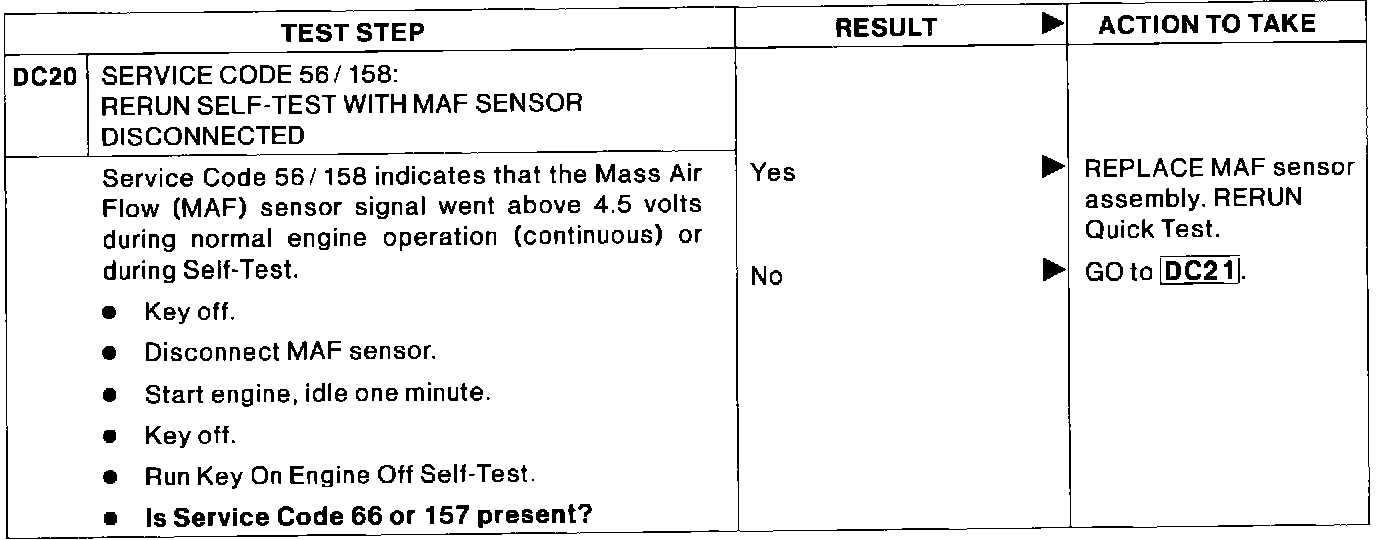 DC20 - Code 56/158: Rerun Self-Test W/MAF Sensor Disconnected