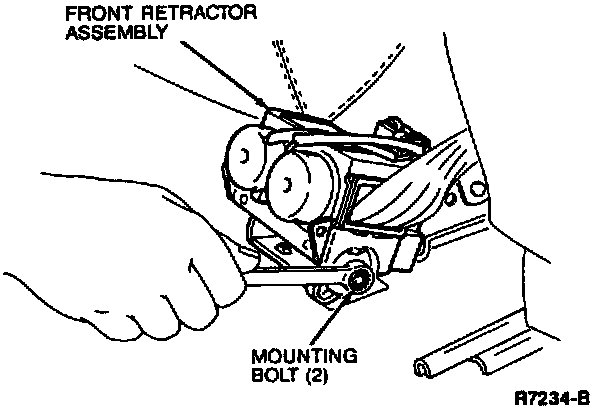 5. Slide the seat forward, then remove the front retractor mounting bolts and remove the assembly.
