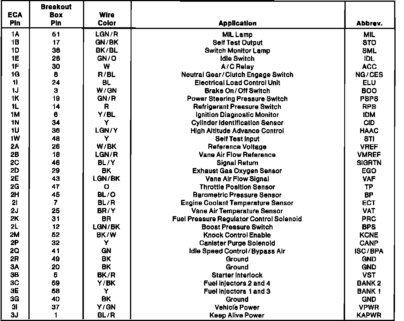 Electronic Control Assembly Connector Pinout: