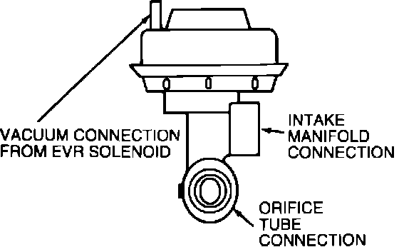 The Exhaust Gas Recirculation (EGR) valve increases or decreases the flow of exhaust gas recirculation. As vacuum applied to the EGR valve diaphragm overcomes the spring force, the valve begins to OPEN. As vacuum weakens, the spring force closes the valve.