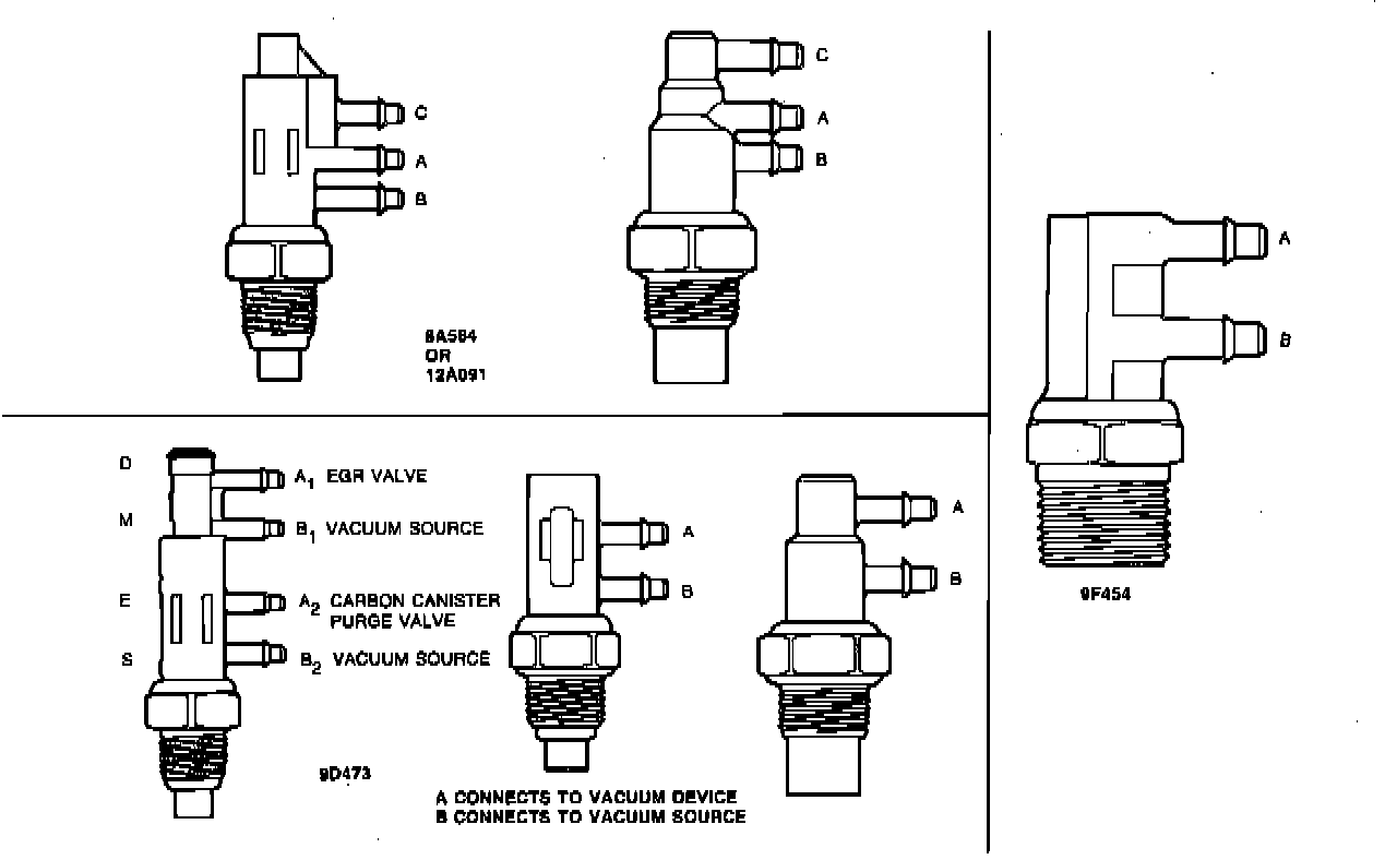 Based on the wax pellet sensing bulb principle and theory, the vacuum control valve directs and supplies vacuum to other emission control components. The bimetal principle is used with the 2-port (9F454) VCV.