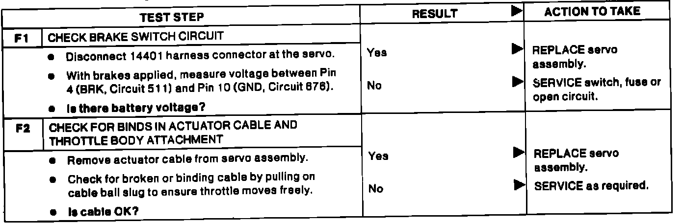 Test F1 - F2 (Speed Control Does Not Disengage When Brake Is Applied):