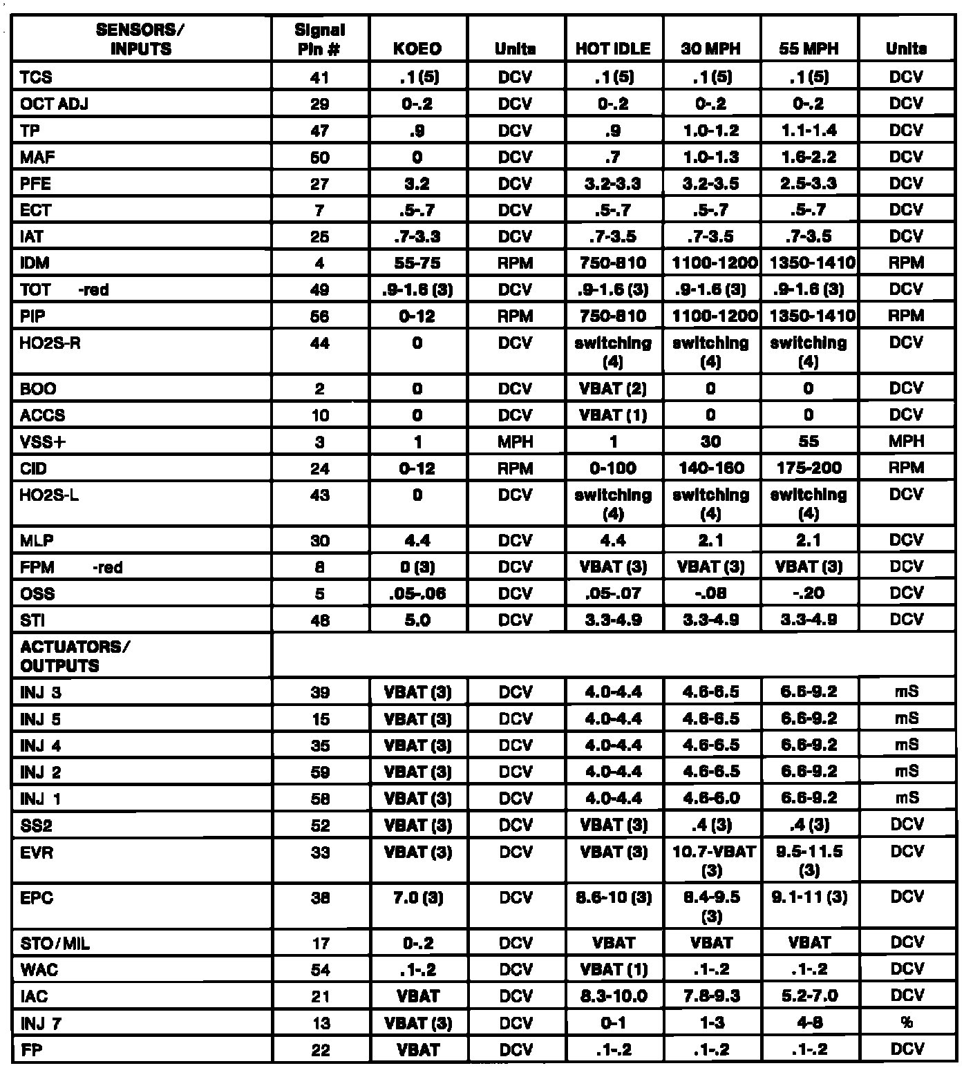 *** Updated by TSB# 9324B15, dated 12/92Diagnostic Reference Values: