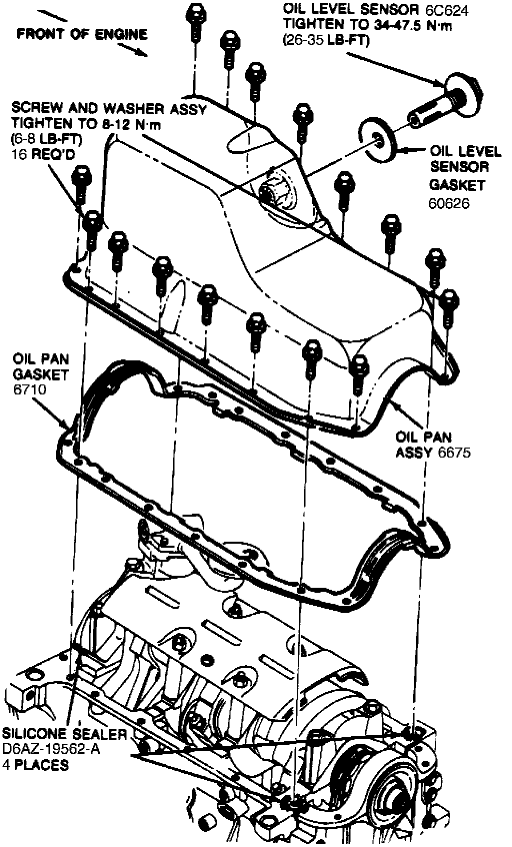 e. Tighten low oil sensor, if equipped, to 26-35 ft lb.